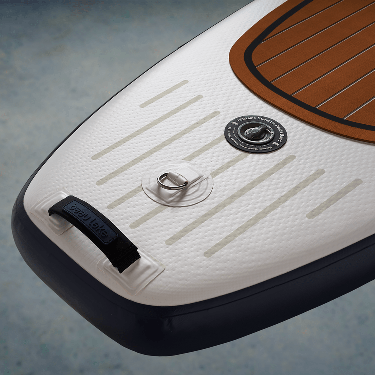 Blending mid-century style with modern performance, The Beau Lake Newport iSUP Paddle Board is built with dual-layer fusion drop stitch and triple-reinforced rails to form a distinctly rigid all-around style inflatable stand-up paddleboard (iSUP) that can support riders of up to 265 pounds.