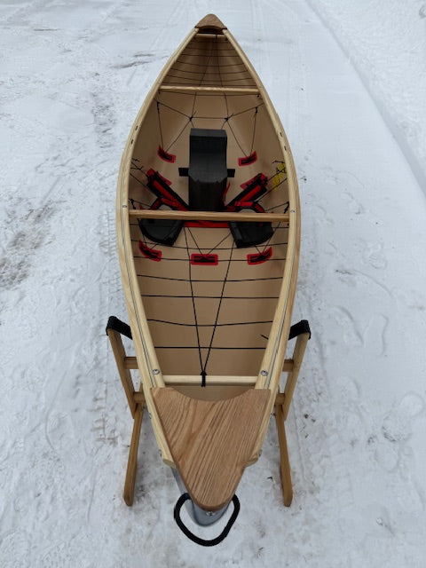 We currently have one in stock with wood trim and bulkhead saddle - it is a beautiful canoe!